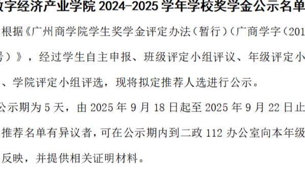 数字经济产业学院2024-2025学年学校奖学金公示名单