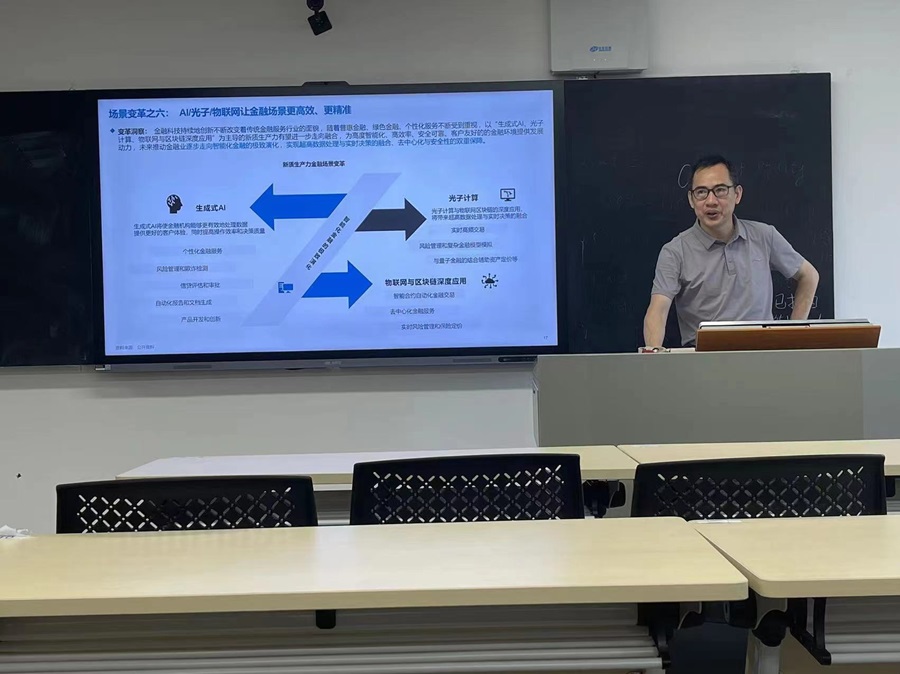 为促进学术交流,拓宽产业视野,6月12日下午15:30-17:30,我院在第八教学楼306教室举办了第二十八期学术沙龙。基于科技创新催生的产业新形态,进行主题为《2024新质生产力引领下的八大场景变革洞察》报告与分享。本期沙龙由肖勋勇博士主讲,共十余位师生参与了本次沙龙的活动。