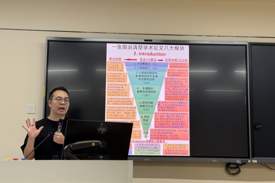 本次沙龙内容全面覆盖了SSCI论文从选题构思到投稿发表的全过程关键环节,系统性地提升了与会者对国际高水平学术论文写作规范、方法要求和发表策略的整体认知。同时余博士对研究方法选择与整合、理论框架构建、写作规范与投稿策略的深入剖析,为与会者,尤其是青年教师,提供了清晰、实用的方法论指导和操作路径,有效助力其提升科研写作能力。本次沙龙通过余博士专业的讲解和详实的经验分享,不仅解答了与会者在国际发表中常见的困惑,也显著增强了大家冲击高水平国际期刊的信心与动力,为学院提升国际化科研水平营造了积极氛围。
