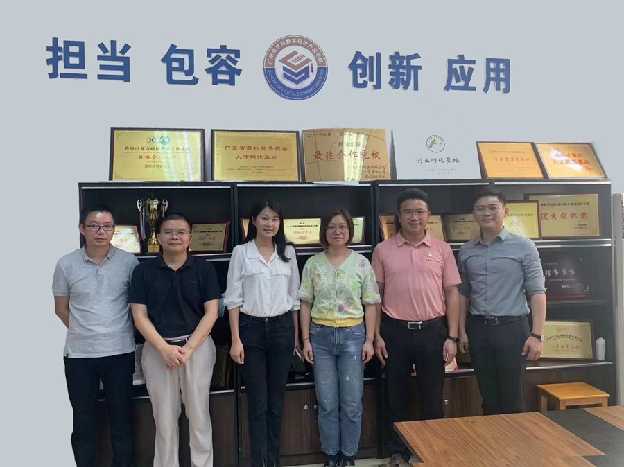 随后,双方参观学院办学成果与荣誉,共同洽谈了知识城电商直播交流会的相关合作项目。知识城电商直播交流会由知识城建设办和广州知识城腾飞园主办,广州商学院协办,旨在了解知识城最新政策,加深政府、学校、企业的三方交流合作,促进学生就业。